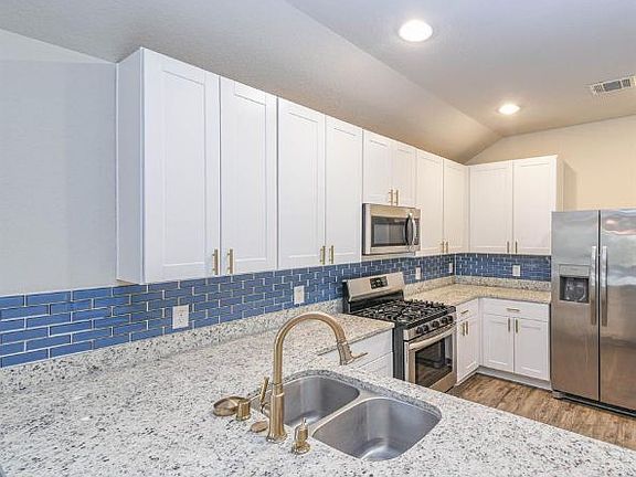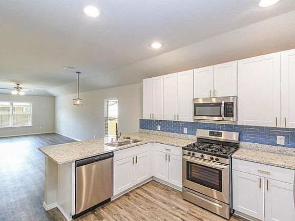 Better than new construction, Up grades and bonuses abound.There is Grass and beautiful landscaping in the front and back yard, The Refrigerator, Washer and Dryer are included. The kitchen has upgraded backsplash, Ferguson nickel plated gold faucet, sprayer, cup wash, soap dispenser, and matching cabinet pulls and upgraded cabinetry, You also get upgraded smart thermostat, ring door bell and security cameras, The Garage also has upgrades and bonces with a work bench and storage cabinets.This Stunning Single-Story home featuring an Open Floor-Plan with Raised Ceilings through out, a spacious foyer that leads into the large open floor plan that is great for friends, family and fur babies too. There are 3 Bedrooms, 2 Baths and a large flex room that can be used for an office, game room, hobby room, the options are endless. This beautiful home also includes a covered back patio, Seller Contribution available for closing cost or to buy down points, so call today to come see this exceptional home.