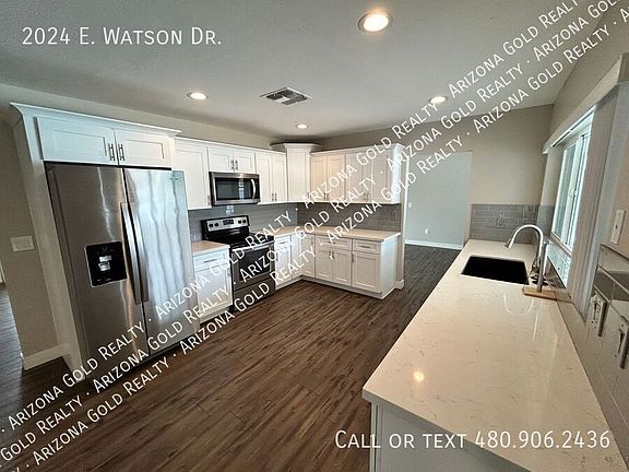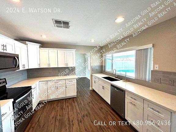 Beautiful, spacious single level home upgraded and updated to please! Split master bedroom floorplan, perfect for in-law suite. Private master suite with dual sinks, walk in shower & private patio exit. Separate living, family room with fireplace & dining room. Light & bright kitchen features Quartz countertops, white shaker style cabinets and stainless steel appliances including refrigerator. Dinette area with recessed lighting. Inside laundry room- washer & dryer included. Full guest bath. Ceiling fans throughout. Attractive laminate flooring - no carpet. Sparkling pool - Pool service and landscaping included for easy living. Energy efficient with double pane windows, block construction, extra attic insulation and dual AC units. Wonderful Tempe neighborhood. Deposits include $2900 refundable security deposit, $300 non refundable cleaning fee, $300 refundable pet deposit per pet with lessor approval. No additional administration fees. Must take occupancy within 3 weeks of accepted application Application must be complete to be processed including copy of driver's license, recent paystubs or other verification of income, photos of pets, and separate application for each occupant over the age of 18 along with $35 application fee per applicant.