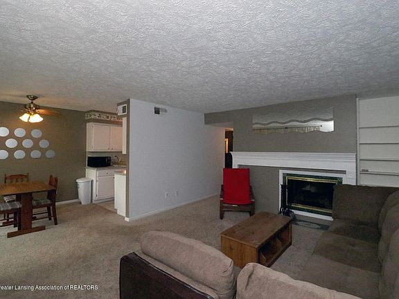: You'll be delighted to call this unit home. Convenient location. New carpeting 2018 in living room and bedrooms. Fireplace in spacious living room. Slider off eating area to balcony; galley kitchen with tile floor. Large master with half bath; bedroom 2 has a slider to a balcony with a relaxing view. Both bedrooms have walk-in closets.