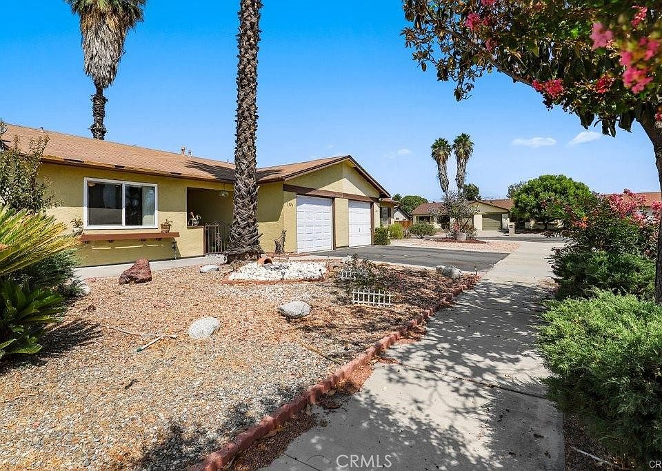 Property features 2 Bedrooms and 2 Baths, and it's located in the Valle Hermosa, 55+ community that is quiet and well maintained. This home has a great floorplan with beautiful crown molding, a custom paint scheme, wood laminate flooring, and a nice, open layout. The living room flows into the dining area and into the updated kitchen that is fresh and bright with white cabinetry, gorgeous granite countertops, recessed lighting, and stainless-steel appliances (refrigerator included). Both bedrooms are generously sized and have carpet flooring. The primary bedroom has a private en suite with a walk-in shower as well as patio access. There is also a full-size hallway bathroom for guests, which is immediately next to the 2nd Bedroom. The enclosed patio has been separated into two rooms, perfect for a workspace, sewing space, additional living room, extra storage space, or whatever you want! These 2 rooms increase the Living Space of this home about 200 SF. There is also a large, flat backyard that is blank canvas for gardening or enjoying a backyard BBQ. The oversized 1-car-attached garage is an added feature with laundry hook ups with plenty of room for storage. This home is conveniently located near shopping, dining, Colonial Golf & Country Club, and more! It's got a lot of natural light and it's clean. This little home is just the right size and all you need to do is bringing to you.