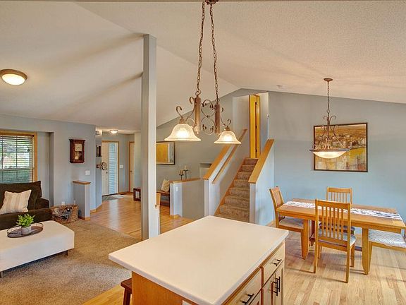 This home has been pre-inspected & comes with a 1 yr home warranty provided at the time of closing. This great 5 bed home in located in a quiet neighborhood. The main floor features an open floor plan including vaulted ceilings and refinished hardwood floors. An updated kitchen with new stainless steel appliances, Corian counter tops & grey subway tile for the finishing touch. Enjoy the upper level with 3 bedrooms including the primary bedroom with a walk-thu bathroom, whirlpool tub and separate shower. The lower level includes the laundry room, 2 additional bedrooms, a game room/bar room that walks out to the patio. The patio is great for grill nights and overlooks your spacious backyard. featuring a pond, perennials, apple trees, raspberries & asparagus plants. The 2nd lower level family room features new paint, carpet and gas fireplace with built-ins along side for those cozy nights by the fire. Make this your next home