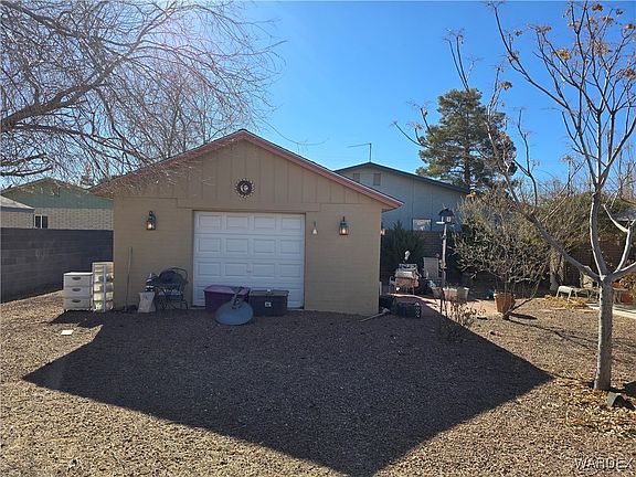 Centrally located off Stockton Hill Rd. Spacious kitchen with backsplash, lots of cabinets and counter space, pass through window that opens up the living area and a detached garage with workbench behind RV gates on a DOUBLE LOT (100 X 100). Beautifully landscaped with easy care rock landscaping and natural desert plants. Charm meets efficiency! This lovely oasis was professionally remodeled from the inside out in approximately 2013-2017: roof, stucco, windows, window coverings, flooring, fireplace, fencing, landscaping, newer heat/ac, doors, ceiling fans, LED lighting, granite in bathroom with tiled bathtub surround. Convenient laundry nook in hall. Corner fireplace. 3 bedrooms, ONE bathroom. 1,229 sq. ft. of living space. Drive by and fall in love....