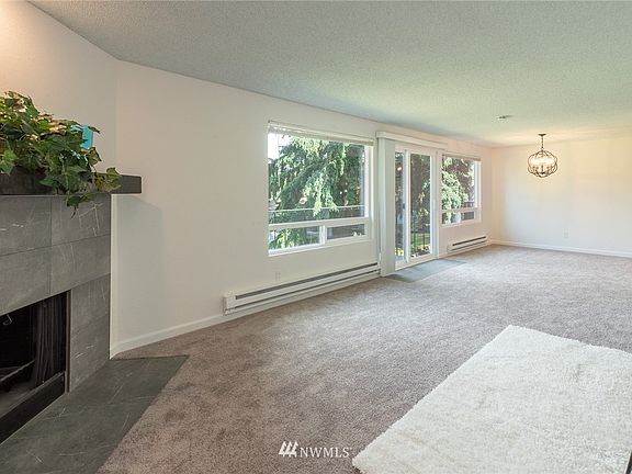 Brand new for you! Custom designed & fully remodeled flat rambler style unit with the latest colors, finishes, lighting, vinyl plank floors & new windows. Upgrades & updates include new kitchen with quartz counter tops, white cabinets, stainless sink & new refrigerator. Also enjoy new cabinets, quartz counter tops, & bath fixtures in both bathrooms. New carpet in living room, dining room and all 3 bedrooms. Private utility room with full size washer & dryer. This second floor condo give you soaring views across open space with trees in the distance from your living & dining room & your own private deck with rear yard stair access. 2 parking spaces with 1 right in front of your condo. This is a one of a kind condo in Tall Firs.