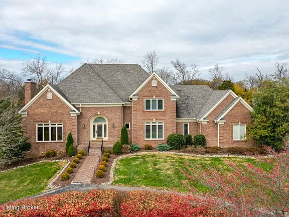 Welcome to the place where luxury meets comfort! This fabulous residence is conveniently located just minutes from Louisville and in the heart of horse country while very close to the Bourbon Trail and Lexington. A lovely facade beckons one up the winding drive to this well placed residence on over 5 pastoral acres. The current owners have gone over this property with a fine toothed comb and made the appropriate changes and upgrades. The first floor primary suite with gleaming wood floors has a sitting room with fireplace and a completely renovated en suite bath. Only the finest of fixtures and finishes were chosen when completing this project. The foyer opens to a banquet-sized dining room with lovely trim detail on one side and a handsome library with rich wood cabinetry, fireplace, and shelving on the other side. In The hallway between the front and rear of the residence is a private guest half bath. It has designer touches and will leave an impression on all who see it! The great room has a vaulted ceiling, palladian window, as well as a fireplace and leads seamlessly into the sunroom and kitchen via a butler's pantry. The sunroom was enhanced by the installation of all new windows, professionally installed by Renewal By Anderson giving the room a more year-round feel. The large cook's kitchen has abundant cabinet space and island with inset cooktop and an additional wall of cabinets with a planning desk. Stainless steel appliances and granite countertops with a lovely herringbone design backsplash complete the look of this stylish kitchen. A handy laundry room lies just inside the back door and close to the kitchen. It has upper cabinets above where the W/D space is and a sink with a base cabinet too. The three-car side entry garage provides ease of transporting groceries and packages into the residence. The second floor has three huge bedrooms...and I do mean huge! One with a totally updated en suite bath and the other two bedrooms share a second full bath on this level. The walkout lower level adds space for recreation, media, workout , crafts or whatever your heart's desire may be. There is a full bath and loads of room for storage or expansion. There is also a seperate garage that is perfect for mowers, ATV's or other recreational vehicles or even to store an additional car if needed. Outside there is a massive patio space for dining al fesco or lounging in the fresh air. The mature landscape is lovely and there are raised bed gardens. You could simply relax in this space or create an organic farm, raise chickens, or even build a small barn and paddocks for horses. The choices are many and they are all yours!!!!