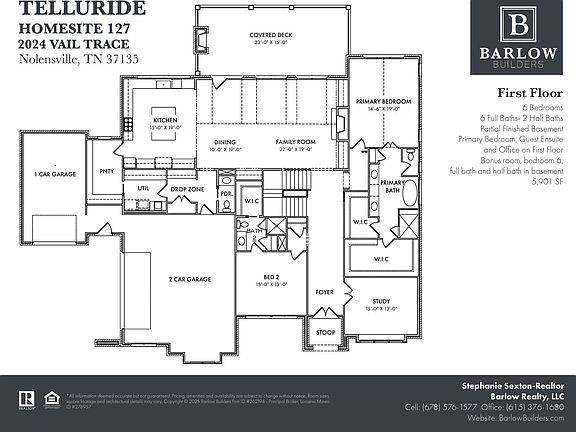Incredibly designed Basement home by Barlow Builders in the highly desirable neighborhood of Telluride on a half acre lot! This custom home features over 5,900 sqft of open, functional living space with tall, vaulted ceilings, 6 spacious bedrooms each with their own walk in closet and en-suite full bathroom, 2 half baths, extra large walk in Pantry, Drop Zone, Study, Built in Bookcase in Family Room, large Covered Deck with fireplace, 2 Laundry Rooms, Homework Loft, Walk in Storage and additional rooms available to finish out in Basement for a future gym or golf simulator room, yard to include full sod and irrigation. Luxury fixtures and finishes throughout! Completion estimated mid-summer June/July.