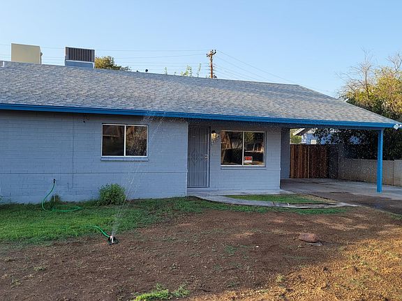A lovely 3 bedroom 2 bath house with vaulted ceilings, SRP utilities, double pane windows and ceiling fans through out, family room, living room, dinning room, open floor plan. Close to adult center, tennis courts, dog park, park, schools, shopping, light rail, bus lines, quick access to freeway, minutes from downtown Phoenix, and with the light rail Tempe is a short commute. Nice back yard. Block wall for added privacy, pets welcome, col de sack, nice neighborhood. Newly renovated. Brand new washer, dryer, and refrigerator. New carpet. Beautiful home, a must see. Utilities are to be paid by Tenant, SRP, and City of Phoenix water. Pets allowed with $ 150.00 non-refundable deposit per pet. No Smoking inside home. LED lighting through out home. Lease is for 12 months then you can either renew or go month to month.