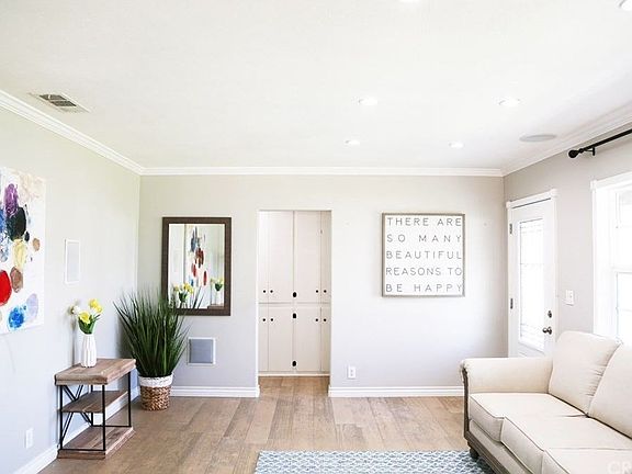 Entertainers delight! Recently remodeled, 3 bedroom 1 Bath home, with a generous size De-tached GUEST HOUSE (Un-permited) with large open living space, full kitchen, 1 bedroom, 1 bath great for extended or large families. Permits to build a 2 bedroom, 1 batch, with a kitchen and living space in hand. Entering this mid-century modern home you will notice the bright living space, wood floors through out, recessed LED lighting. Open ample kitchen with travertine floors, Granite countertops, travertine backsplash, build in convection oven with microwave, large Viking 36" range, dishwasher. Double sink bathroom, water jetted tub with bench finished off with travertine throughout. Three generous sized bedrooms. Surround sound speakers set up and HDMI cables in living room, two bedrooms have HDMI on walls. backyard is ready to enjoy, Outdoor speakers, Covered patio with travertine floors, stamped concrete through out, gas fire pit finished with ample concrete benches through out. Good sized storage shed in the back of the property.