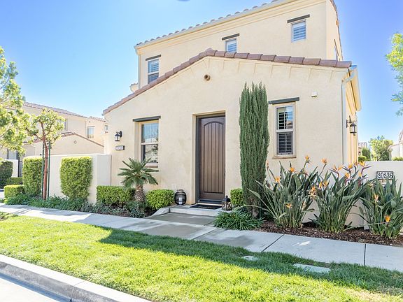 Welcome to Cortile at Tuscany in prestigious Porter Ranch! Nestled in a secured and well maintained gated community, this corner unit features a floor plan with 2 bedrooms and 2.5 bathrooms. Great sized living room with fully stocked kitchen that has granite countertops and backsplash, stainless steel appliances and dark wooden cabinets. Kitchen leads to patio- perfect to relax and enjoy for the upcoming summer nights! The first floor has laminate flooring that runs throughout, while the second floor has well maintained carpet. Other highlights include baseboard and crown moldings, central AC, generous storage space, along with plantation shutters for all the windows. Recessed lighting and ample sized windows for natural lighting! BONUS!!! COZY AREA ON SECOND FLOOR CAN BE UTILIZED AS AN OFFICE OR PLAYSPACE! Spacious primary bedroom has an en-suite bathroom that is equipped with a granite countertop vanity. Second bedroom also has its own bathroom- THE IDEAL FLOOR PLAN- perfect for privacy and individual space! Cortile at Tuscany offers lush green serene landscaping throughout the main grounds, plus a community pool, spa, grill. LOW HOA FEES! Located near Kaiser Permanente Hospital, Whole Foods Market, Porter Ranch Town Center, Starbucks, Limekiln Canyon Park, Nordstrom Rack, AMC movie theatre and SOUGHT OUT AWARD WINNING PORTER RANCH COMMUNITY SCHOOL! Conveniently near the 118 freeway- perfect for the commuters!