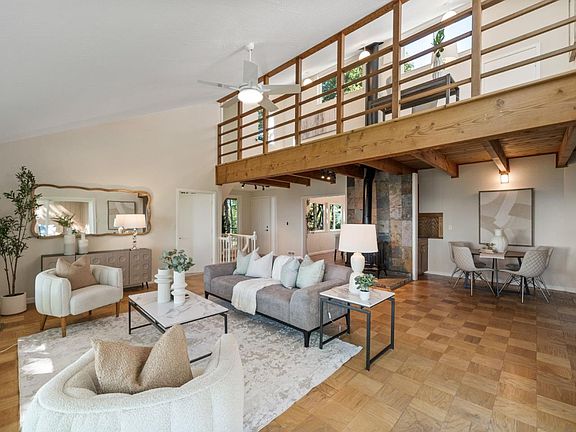 Wake up to breathtaking views of the mountains, canyons, and Monterey Bay from this stunning retreat in the highly sought-after Las Cumbres community. This home offers an incredible blend of nature, comfort, and functionality. The heart of the home is a dramatic great room with soaring vaulted ceilings, huge picture windows, and a cozy wood-burning stove, opening directly to an expansive wrap around deck that invites you to relax or entertain against a stunning natural backdrop. Off the main living area is a flexible family room with loft, and a kitchen that features granite counters, a gas range, and a spacious dining area. Down the hallway are 2 bedrooms that have incredible views and dramatic vaulted ceilings. The lower level offers a private primary suite or space for guests, with more stunning views plus direct access to the outdoors. Las Cumbras residents enjoy exclusive access to hiking-biking trails, a community center, a pool, sports courts, a community center, & year-round events. Practical amenities include a private water company, a volunteer fire dept, and high-speed fiber Internet. Just 20 minutes to downtown Los Gatos & served by top-rated Los Gatos schools, this is mountain living at its best.