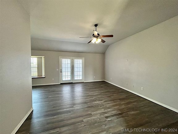 Nice home in cul-de-sac located in Broken Arrow schools! NEW ROOF 2023! New plank flooring throughout! Fresh paint. Spacious open floor plan with 3 bedrooms, 2 baths, 2 car garage, vaulted 9+ ceilings in living room, sunny dining area with window seat, French doors going out to the patio, laundry room, and kitchen with window to see the backyard. Located in back of subdivision with extra land beyond the fenced in area - total of approximately .55 acres! Large privacy fenced back yard with no houses behind you. Country Lane Elementary and close to the High School. Make this home your own!