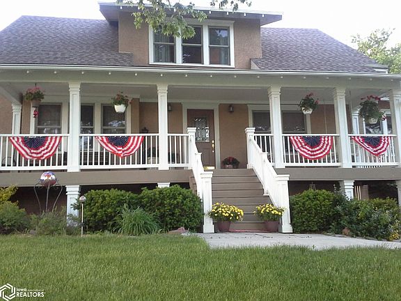Stunning country home restored and remodeled with many unique features like quartz countertops, custom oak cabinetry, full bar area with wine room and cedar lined guest suite with private bath. The master bedroom suite has jetted two-person whirlpool, steam shower and double vanity. A window lends natural light while the rural location maintains privacy. All four bedrooms have private bathrooms and there’s a half bath for visitors. Original hardwood floors grace most of main level while kitchen is perfect place for modern ceramic floor tile. Kitchen also boasts new Blanco farm sink with Delta fixtures and Culligan reverse osmosis drinking water system, electric oven, gas burner cooktop, and more Whirlpool appliances. Second story has been updated with new windows and zonal heating and cooling. Located on 2.6 acres with more acres available, this beautiful home is a short drive north of Mt. Ayr on hard-surface road. Enjoy spectacular farm vistas from your covered deck and porch.