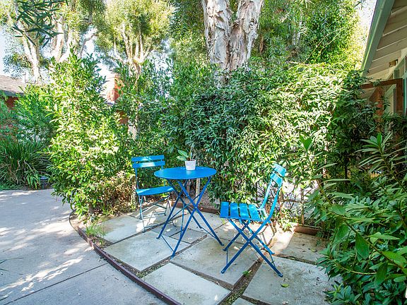 Hidden behind hedges in a magical courtyard, this cozy corner unit features slate floors, masonry walls, vintage 50's bathroom tiles, wood floors in the bedroom and wide windows looking out onto verdant foliage and a lovely little patio. Incredibly convenient location directly across from Virginia Park & it's Saturday Farmers' market. Next to Whole Foods, 3 blocks from the Expo Line, close to the 10 Frwy, Bergamot Station & shopping and restaurants on Pico. One car gated and covered parking.