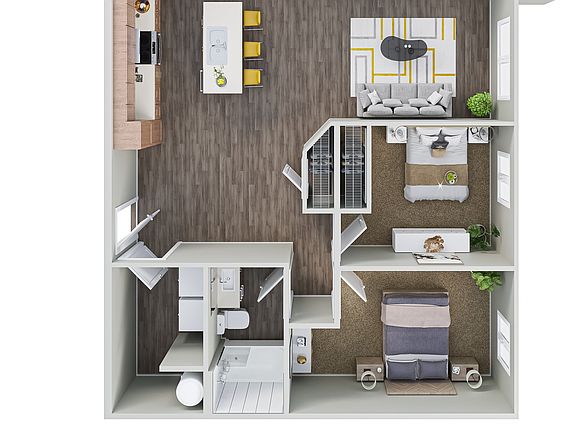 Eat-at counterStorage solutionsPrivate patio or balconySecond bedroomThird bedroomStainless-steel appliancesSoft-close cabinetry