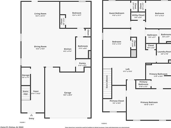 Upstairs, a large loft serves as a versatile second living space, complemented by the private primary suite with a walk-in closet and spa-style bath. Three additional bedrooms share a well-appointed bathroom, and a convenient laundry room is located on the same level. The two-car garage and landscaped yard add everyday practicality, and the home welcomes pets, making it a fit for the whole household.