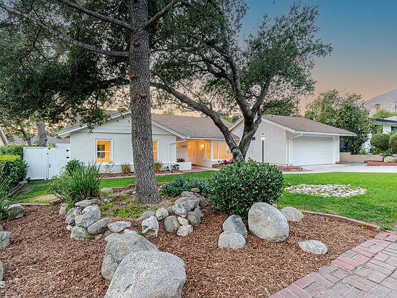 Located on a tree lined street in the Fox Ridge Estates neighborhood of Pasadena, this charming Ranch style home awaits. A large oak tree in the front yard greets you as you approach the property, creating an inviting setting to come home to. A gracious entry welcomes you through the front door where lots of natural light, large windows and crown moldings can be found throughout the home. The spacious living room is a great place to relax and flows to the family room with bookshelves and fireplace and an open concept eat-in kitchen. A center island with plenty of cabinet space can be found in the kitchen. There is a sliding glass door from the family room that leads to the backyard, ideal for entertaining. The primary bedroom suite has an attached bathroom, large closets and access to the backyard through a sliding glass door. Two additional bedrooms have ample sized closets and share a hallway bathroom. Backyard features include a large patio space, multiple grassy areas, a beautiful pool and spa with views to the mountains. An attached 2-car garage completes the property and there is additional space to park in the driveway. The home has recently been painted and new carpet and wireless HVAC system was installed in September.