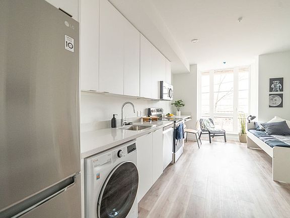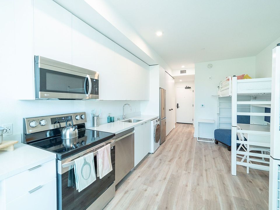 At RISE at Berkeley, our studio floor plan provides everything you need to make college life smooth. Every apartment home for rent features a kitchen equipped with appliances to accommodate your meal preparation, and air conditioning and heating ensure your comfort all year round. A stylish kitchen and wood-like flooring bestow a modern decor, and furniture options are available to help lessen your load. In-unit washer and dryer make your laundry day a breeze.
