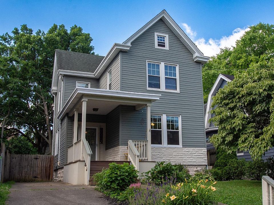 Charming, move-in ready 2 bedroom 2 full bath home with bonus room in the heart of Norwood! Quiet street-scape; welcoming entry; cozy living room; gracious dining room with decorative fireplace; 1st floor full bath; cheery updated kitchen with stainless appliances; 2 large bedrooms on 2nd floor with full bath; generous 3rd floor bonus room can serve as home office, game room or private retreat; fenced rear yard with deck perfect for outdoor entertaining; off-street parking; convenient location close to shopping, dining & entertainment