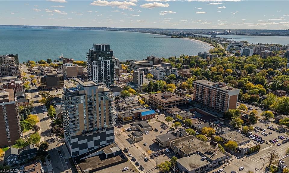 Experience peak urban living in this rare, contemporary corner suite in the prestigious Berkeley Condos, perfectly positioned in the heart of downtown. Steps from Burlington’s vibrant waterfront, premier dining, boutique shopping, cultural events, and everyday conveniences, this residence offers the ultimate lifestyle experience for those who value luxury and location. This spectacular South-East facing suite boasts a stunning open-concept design highlighted by floor-to-ceiling, wall-to-wall windows, soaring 9’ ceilings, and direct lake and escarpment views. Hardwood floors flow throughout the expansive living and dining areas, seamlessly extending to a remarkable 200 sq ft wraparound balcony—ideal for morning coffee, evening cocktails, or simply soaking in the panoramic vistas. The chef-inspired kitchen is an entertainer’s dream, featuring an 8’ quartz island with breakfast bar, sleek built-in stainless steel appliances, tile backsplash, range hood, and a dedicated coffee bar. The serene primary retreat offers a walk-in closet and spa-like 4pc ensuite with oversized vanity, luxurious soaker tub, and glass walk-in shower. An additional spacious bedroom and modern 3pc bathroom provide versatility for guests or a private office. In-suite laundry, two parking spaces, and two storage lockers—including one super locker—add exceptional convenience. The Berkeley lifestyle is second to none, offering 24-hour concierge, a fully equipped fitness centre, two guest suites, party and games room, and an impressive rooftop terrace with breathtaking views. A true must-see—this is downtown luxury living at its finest.
