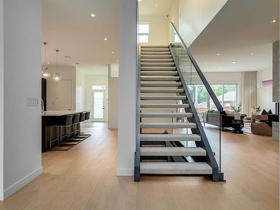 Nestled on a full 50x121 ft lot in the prestigious community of North Glenmore Park, this exceptional residence combines timeless elegance with modern sophistication. Boasting over 3,200 sq.ft. above grade, the home is designed for both refined living and effortless entertaining, offering 3 spacious bedrooms upstairs, an additional bedroom on the lower level, and 4 beautifully appointed bathrooms. Every detail has been thoughtfully curated, with upgrades including motorized blinds, Lutron smart lighting, a state-of-the-art security system with cameras, newly installed dual central A/C units, water softener and filtration, steam shower, heated floors, built-in surround sound, custom holiday lighting, and irrigation. The main level showcases a stunning open riser staircase with glass railings, a gourmet kitchen with premium finishes including a butler's pantry, formal dining, a private office, and expansive glass doors that open seamlessly to the sun-drenched south-facing backyard. The lower level is an entertainer’s dream with a custom wet bar, temperature-controlled wine display, home gym (or optional 5th bedroom), spa-inspired bathroom, and generous storage. Outside, a heated 3-car garage with EV rough-in completes the package. Perfectly located just steps from River Park and Marda Loop, with premier schools, boutique shops, fine dining, golf, and endless pathways nearby, this is a rare opportunity to experience luxury living in one of Calgary’s most sought-after neighborhoods.