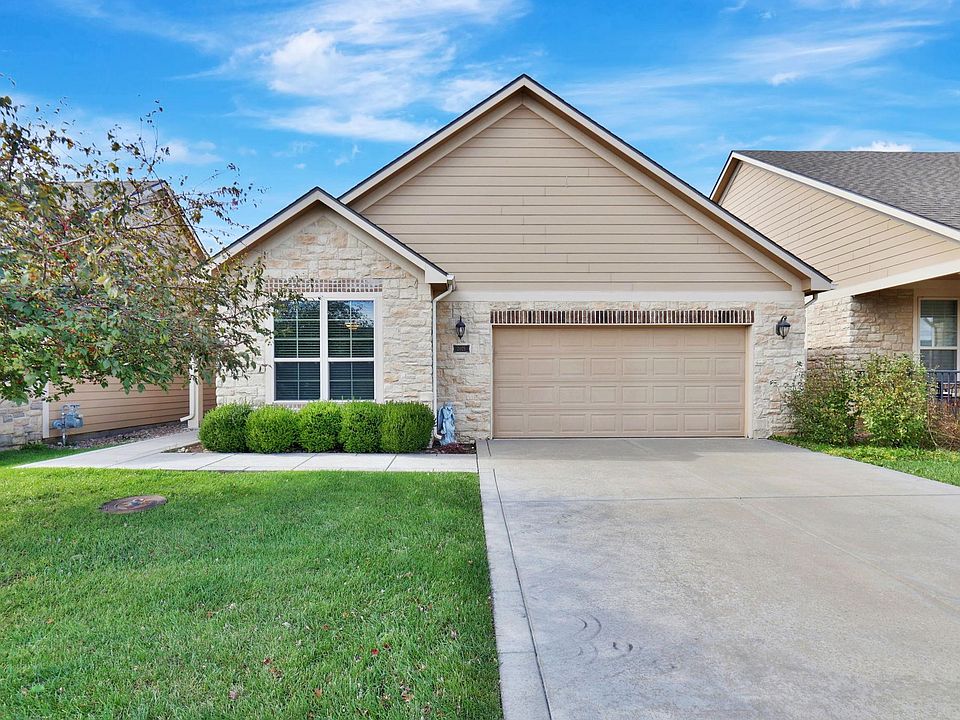 Experience the perfect blend of comfort, style, and low-maintenance living in this stunning patio home located in the coveted Cross Creek neighborhood of The Oaks in Derby. This beautifully designed 2-bedroom, 2-bathroom residence offers a generous 2,114 square feet of finished space, featuring a bright, open floor plan perfect for modern lifestyles and entertaining. The gourmet kitchen is a chef's delight, showcasing rich wood cabinetry, a center island, and walk-in pantry, all flowing seamlessly into the main living area where a cozy fireplace provides a warm focal point. The layout offers maximum convenience with a dedicated, private home office/den off the entryway, and a separate laundry room. Retreat to the spacious primary suite, which boasts a large walk-in closet and a luxurious ensuite bathroom with dual vanities. Designed for low-maintenance living, the charming stone exterior, coupled with the benefit of an HOA that handles exterior maintenance, lawn care, and snow removal, means you can spend your weekends relaxing or enjoying the community amenities like the clubhouse and pool. This is your chance to own a beautifully appointed home in the Derby Public School district, where organization is simple thanks to the custom-built mudroom bench and the ample storage throughout.