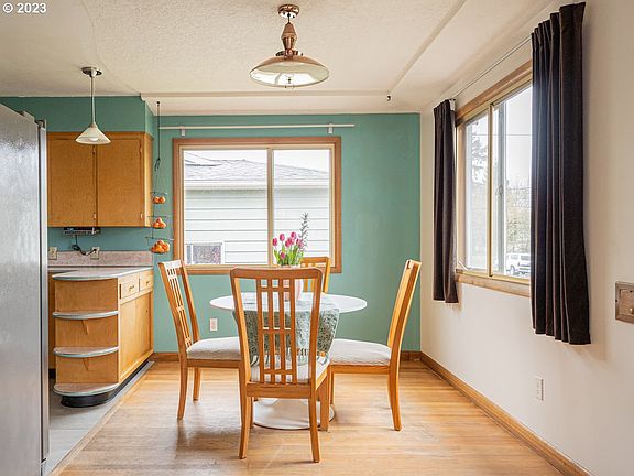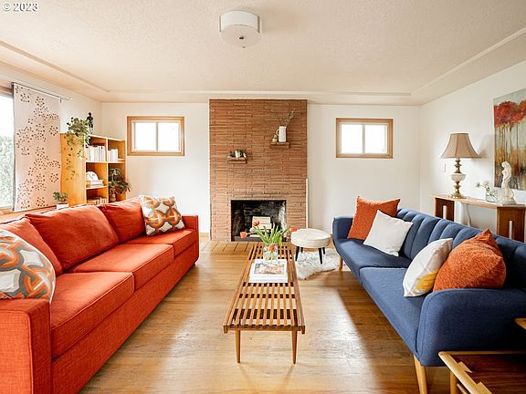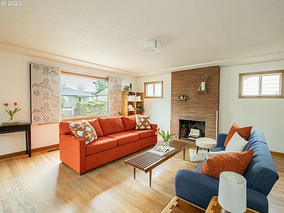 With solid Mid-Century bones, this two-level home is spacious, stylish, and so cute from the curb. Natural light, A/C, original hardwood floors, and wood burning brick fireplace. Kitchen has ample space, sweet retro vibes & attached dining area. Three bedrooms with roomy closets on the main, and an adorable vintage bathroom. Lots of potential downstairs w/family room, full bath, bedroom, storage area/workshop. Huge fenced yard with charming covered pergola, and great Overlook location! [Home Energy Score = 3. HES Report at https://rpt.greenbuildingregistry.com/hes/OR10213413]