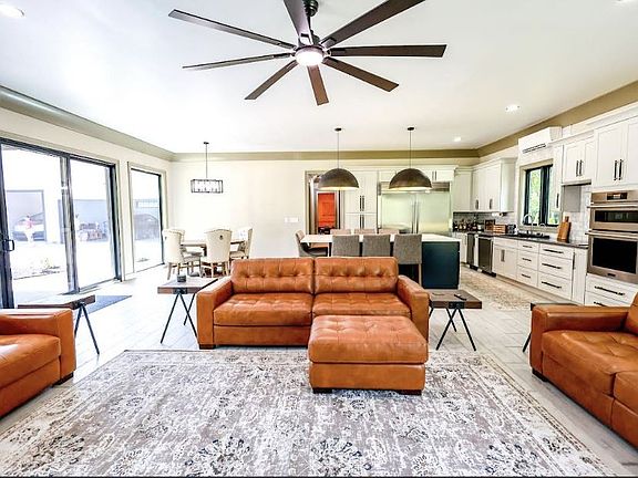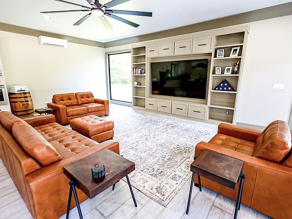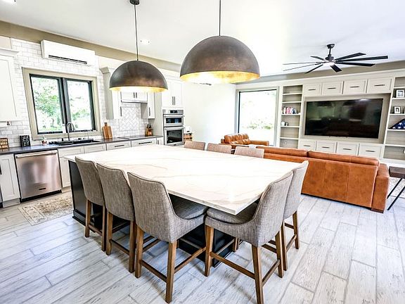 The home features three spacious bedrooms and three full bathrooms, all located on the main level. Each bedroom includes custom walk-in closets, with the master suite boasting a brand new spa-style bathroom complete with an oversized open shower and a fully custom walk-in closet. The gourmet kitchen is designed to impress, with Frigidaire Professional appliances, a wine fridge, dedicated ice maker, and an open floor plan perfect for entertaining—just in time for football season. The 9ft by 5ft island sits 8 comfortably.