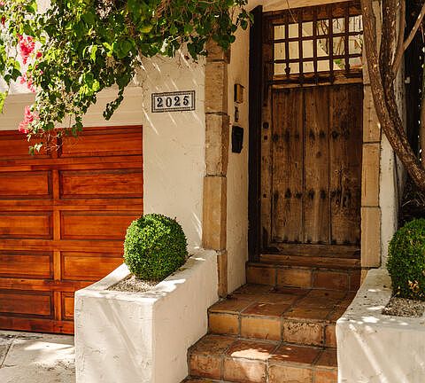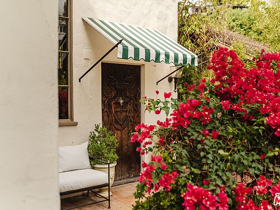 Romance and vintage splendor will find you at this 1928 Spanish tucked away in a hidden and serene pocket of the Hollywood Heights neighborhood. Gated from the street and surrounded by lush landscaping, you will feel a world away from the bustle of the city as you walk up the steps into this classic home. Entering into the foyer behind a gorgeous original hand-carved wooden door, you are greeted with soaring double-height wood-beamed ceilings in the living room and a glorious working fireplace. The pass-through to the kitchen has retained original charm like the vintage silver telephone from a bygone era, while featuring beautiful and tasteful modern updates. The formal dining room opens out through multiple french doors to the balcony and features an adorable wallpapered powder room. Upstairs is a cozy primary bedroom with ample walk-in closet space and en-suite bathroom with amazing touches like a leaded stained-glass window and original fixtures. An additional sunny bedroom with en-suite tiled bathroom and peek-a-boo skyline views complete the upstairs layout. Traveling down the spiral staircase is an incredible wine cellar/den, and a third bedroom that feels like its own separate apartment with an ensuite bath- perfect for hosting guests or a home office. All doors eventually lead out to the wraparound patio or down to the expansive wood deck, draped in mature jasmine and wisteria, and ideal for dining al fresco or hosting friends under the stars. This secluded gem is in one of Hollywood's best kept secret pockets with access to the private neighborhood dog park and centrally located to studios, freeways, the Hollywood Bowl, and all the best the city has to offer.