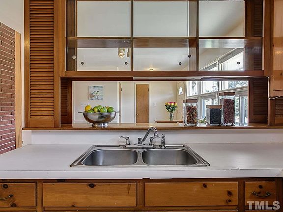 Conveniently located in the heart of RTP, this classic brick ranch sits high on a sprawling acre of luscious lawn, with floor-to-ceiling windows throughout, letting in plenty of natural light. Enjoy outdoor entertaining on the large brick patio during warm evenings, and snuggle by the wood-burning brick fireplace when the weather gets cooler. Freshly painted, new laminate flooring (over hardwoods!), and plenty of original charm. Brand new appliances! $3,000 ALLOWANCE TO BUYERS!