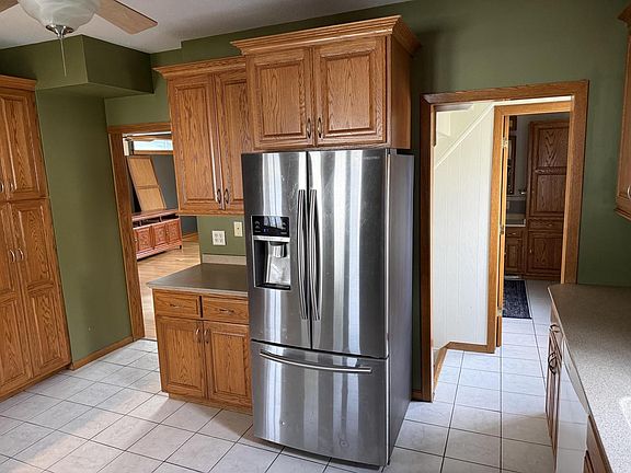 Half bathOak built-insVaulted ceilingsWood laminate flooringVinyl flooringOak cabinetsNice appliances
