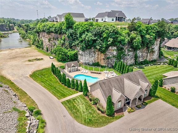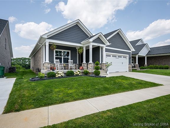 This 5 Bedroom, 4 Bath Craftsman style home features, a Barrel Ceiling in the Foyer, Granite countertops in the Kitchen, Gas burning Fireplace in the Living Room, Laundry on the First Floor, Upstairs you have a private suite for teenagers or guests, Downstairs you have another Bedroom, Bath, Family Room and Theatre Room, plus exterior storage space, 2 car attached Garage with an additional door for a golf cart. All of this is located in the Desirable Gated Community of Quarry Bluff. Some of the neighborhood features are 3 Beaches where you swim, play in the sand, kayak or fish, Club House, inground Pool and a Pickleball/Tennis court. All located around the quarry in Jeffersonville. This is the perfect Stay-cation Neighborhood.