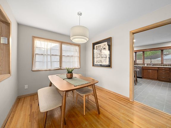 The home has fresh paint, new countertops, new appliances, and renovated bathrooms. It has a comfortable layout with 3 bedrooms, 2 full baths, 2 living rooms, 2 fireplaces, one bonus room, and attached two stall garage. The floors are all hard surface- including hardwood and tile.