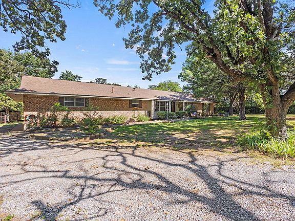 Looking for a taste of country living, just outside the city limits? Nestled on FIVE acres, this spacious ranch-style home features rooms with beautiful wood flooring and a cozy brick fireplace in the family room, which is connected to a charming eat-in country kitchen. For holiday feasts, gather around the dining table in the additional living area. With a three-car garage, electric-equipped workshops, and a nicely wooded setting, you will have plenty of room to roam and bring the family and pets! This property is located near large estate homes in prestigious Woodlake area, but this one has no HOA. It's an easy commute to TI, GlobiTech, and Coherent, or perfect for a Digital Nomad—two of the four bedrooms could serve as lovely offices. This home is offered as-is, and with five acres and at this price, it's ready for you to make it your own.
