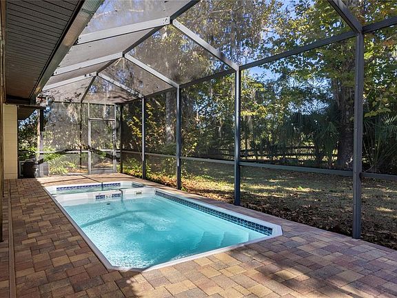 Horse lovers' dreams come true at this beautiful 4 acre, gated pool home in NW McIntosh's Cut Above neighborhood. Located just 20 minutes from central Gainesville, only 1 mile from 441 and downtown McIntosh and 20 miles to Ocala and 30 miles to the World Equestrian Center. This brick with board and batten ranch home was built in 1990 and has 4 bedrooms and 2.5 bathrooms and 2,626 heated and cooled square feet. The 4 acres is horse fenced and cross fenced with pastures and a 3 stall barn. The home has many updates including new interior paint, metal roof on the house and barn, updated appliances and LVP flooring. You enter the home from the large covered front porch. This is the best seat in the house for the amazing sunsets. You enter the living room with high, vaulted ceilings and LVP flooring. It is open to the dining area. The dramatic wood burning fireplace has a floor to ceiling wall of coquina stone. The dining area has a new built in credenza with beverage refrigerator and stacked stone accent. Straight ahead from the foyer is the Family Room with wood paneling, second stone fireplace, tile floors and sliding glass doors to the covered, screened porch, pool and spa. The Family Room has vaulted ceilings and is open to the kitchen and breakfast nook. The large kitchen has wood cabinets, granite countertops, custom tile backsplash, stainless steel appliances, breakfast bar and a pass through window that opens to the pool area. Just past the kitchen is a pantry closet and an open breakfast nook with additional sliding glass doors to the pool. To the right of the pantry is the indoor laundry room complete with washer and dryer. Past the kitchen is the Primary Suite with a split plan for privacy. This large primary bedroom has laminate wood floors, two walk-in closets, a private ensuite bathroom and sliding glass doors to the pool and spa. The bathroom has skylights for a ton of natural light, soak tub, separate shower, linen closet, separate sinks and vanities, tiled accent wall and a water closet with toilet and bidet. The other side of the home, to the right of the foyer is the guest bedrooms. On your left is a half bathroom perfect when entertaining guests. This bathroom has an updated vanity, countertop and tile floors. Across from that is the large guest bathroom with a new vanity, porcelain countertop and tile floors. It has a shower/tub combo and separate access to the pool. There are three guest bedrooms with either tile or laminate wood flooring. The home has no carpet. Off the kitchen is a 2 car garage with plenty of room for a workbench and storage. The rear of the home has a covered area perfect for outdoor dining. It is open to the screened enclosed pool and heated spa. The deck has been updated with pavers. The rear of the property has a large barn. There are three stalls and could possibly have a fourth that is currently a feed stall. There is a large tack room. The barn has electricity and water. There are 4 pastures cleared and dry. The Cut Above neighborhood has an HOA with a low annual fee of $400. The deed restrictions allow livestock and horses. The home includes a two horse trailer and riding mower. Zoned for Reddick Collier Elementary, North Marion Middle and North Marion High Schools. Marion County has relatively low property taxes. Home includes an electric gate at the front entry and underground utilities with service from Duke Energy. Fiber optic high speed internet service available.