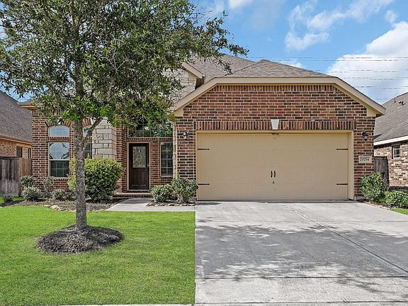 This stunning two-story home in Miramesa at Canyon Lakes West is now available for sale! Featuring 4 spacious bedrooms, 3.5 baths, and a 2-car garage, this home offers privacy with no back neighbors. Inside, you’ll be greeted by high ceilings, beautiful hardwood floors, and an open living area with a cozy fireplace. The chef’s kitchen is equipped with granite countertops, a breakfast bar, and stainless steel appliances. The primary suite, conveniently located on the first floor, includes dual vanities, a whirlpool tub, and large walk-in closets. Upstairs, you’ll find a game room and additional bedrooms, perfect for family living. The expansive backyard offers a covered patio, ideal for outdoor relaxation and entertaining. Conveniently located near major roads, shopping, dining, and Lone Star College, this home combines luxury and convenience. Don’t miss the chance to make this beautiful property your own!