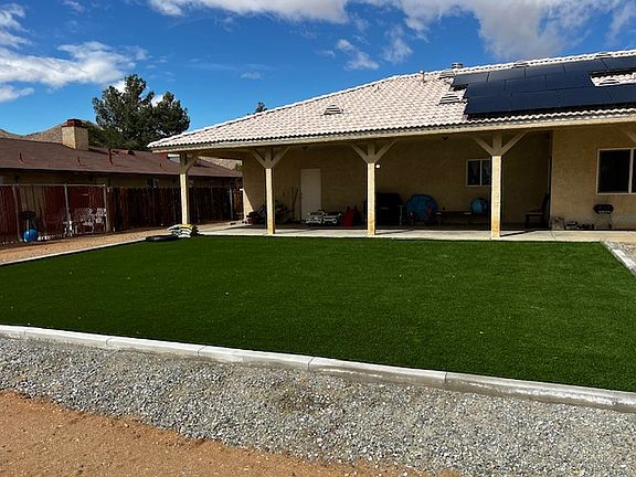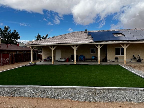 Come check out this charming 3-bedroom, 2-bath home in the heart of Apple Valley! This inviting residence features a blend of tile and wood laminate flooring throughout, offering both style and durability. The home is also equipped with solar panels, helping you save on energy costs. The backyard boasts a brand-new turf patch, perfect for easy maintenance, along with a spacious covered patio ideal for entertaining. Don't miss out on this wonderful home schedule a viewing today!
