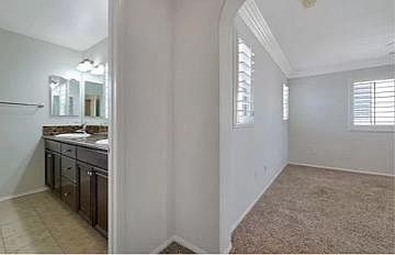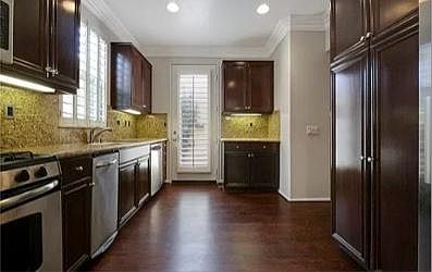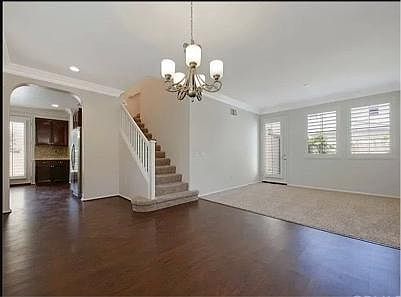 Freshly painted home with hardwood floors and carpet. Beautiful shutters and crown molding throughout.
