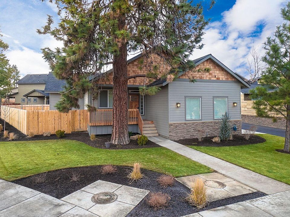 Better than new, single level three bedroom two bath with office, easy bypass access connecting you to all of Bend and very near to the newest park in Town.This property has it all, turnkey. Granite countertops, hardwood floors, stainless steel appliances, and custom ceiling features, landscaped and fenced. Move in ready.