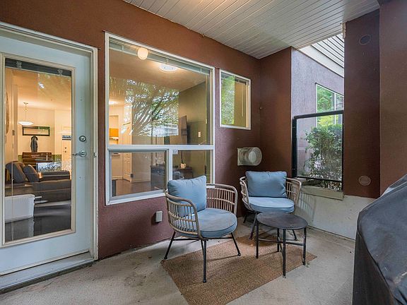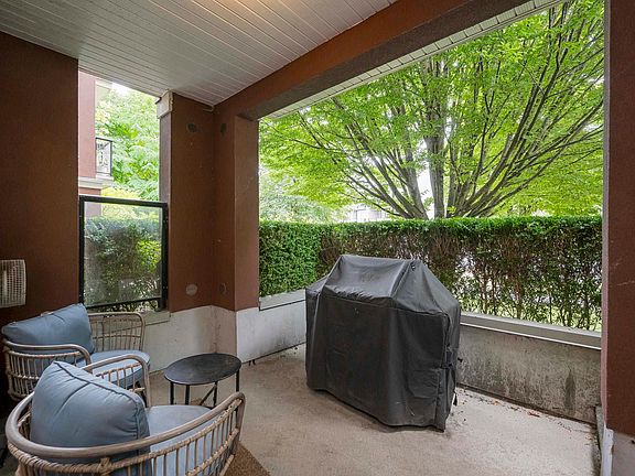 Beautifully updated condo with a 2-year-old roof! Just a 2-minute walk to the future Skytrain station in a quiet, convenient location. This hidden gem features 2 bedrooms, 2 full bathrooms, and a spacious ground-level layout. Enjoy high ceilings, an open-concept design, a large master bedroom with his-and-her closets, a generous second bedroom, a living room with gas fireplace, side-by-side in-suite laundry, and a private, massive covered patio perfect for entertaining, BBQs or relaxing all year round. The kitchen boasts granite countertops, stainless steel appliances, ample cabinetry, and newer flooring. The well-managed complex offers a guest suite, bike room, amenity room, gym, pool table. Steps from bus stops, coffee shops, markets, library, and park and future sky train line.