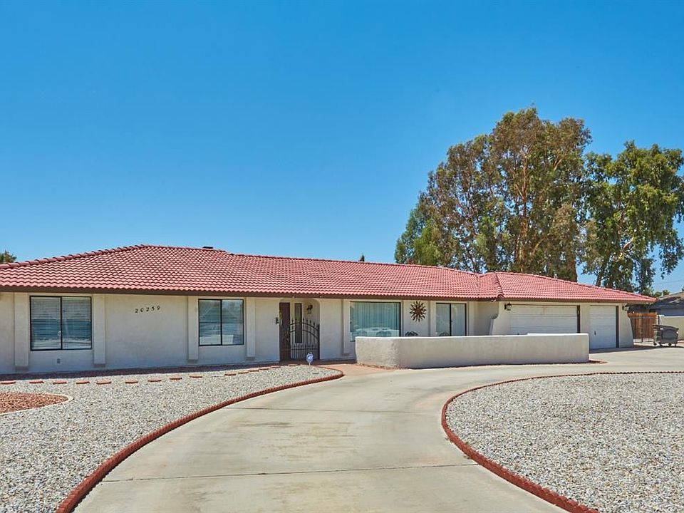 Buy this home with $0 down!!!! (qualifications required) Welcome home to this stylish single level Apple Valley home! Located in a peaceful neighborhood, this 3 bed 2.5 bath home sits perfect on a masterfully rock gardened .62 acre lot. From the front you will notice a circle driveway, wrought iron gates, a front courtyard seating area with stamped concrete, 3 car garage and gated RV parking. While stepping in you will notice this home is one of the cleanest on the market. You will also notice the newer diagonal tile and mosaic tile inlay! Wide open formal living & dinning rooms can easily be rearranged to fit your exact needs. The family room boasts tall ceilings, modern lighting, and a warm brick fireplace. The kitchen features upgraded granite countertops, fixtures, lighting, and sleek black appliances. The kitchen opens up to the a dining area and the family room, allowing you to feel connected to others no matter which room you are in. Don't miss the genius office closet conversion! Master bedroom has a large walk in closet, and attached master bathroom has dual sinks, walk in shower, tub, and a built in seated vanity. Bedrooms feature custom lighting! Indoor laundry room with additional storage with attached half guest bathroom. The back patio is the perfect location for summer evenings.. and year-round with the included covered spa! Back yard features a rock garden, extra cement and a shed/workshop/man-cave/she-shed with 220 power. Google Street View is 5 yrs old