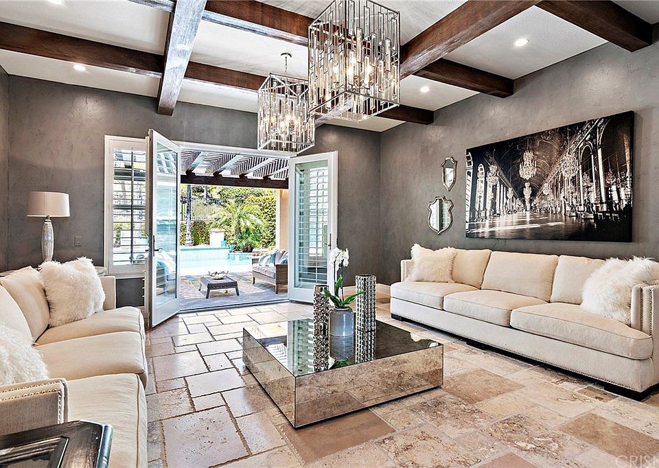 Absolutely dazzling! Enter through the grand doors to this impressive SINGLE STORY Shappell home on a cul-de-sac in prestigious guard gated community of "Renaissance Summit". This 4 bed,5 bth estate boasts 10ft ceilings, 8ft doors & tumbled stone floors. A light & bright open floorplan greets you w/inviting french doors in the living room & coffered wood beams. Elegant formal dining room w/hand painted built-in hutch & custom chandelier. The spacious remodeled kitchen features center island dressed in gorgeous Calcutta Select marble, complete w/prep sink. Stainless steel appliances, 3 built-in Sub Zero refrigerators, 6 Burner Thermador Range w/pot filler, double oven, warming drawer, Bosch dishwasher & wine fridge at butler's pantry. The family room's focal point, a stunning media niche encased from floor to ceiling w/ Arctic White ledger stone...sure to take your breath away! The ample master suite offers remote control fireplace, hard wood floors, custom walkin closet, Americh Thermal Air Tub, his & her sinks & separate vanity. The resort style yard is perfect for entertaining featuring a majestic roof tiled attached patio, glass tiled salt water pool & spa, tumbled travertine hardscape throughout, outdoor built-in DCS Bbq, 2 burners & built-in fridge. This home includes LED recessed lighting, central vac, family room surround sound, new interior & exterior paint, dual AC condensers & much more! Close to schools, restaurants, shops, golf course & Porter Ranch Vineyard!