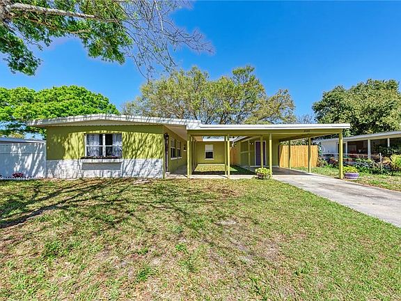 What a charming home! The neighbors are lovely! Updated 3 bed/1 bath house with NO HOA or CDD fees and no deed restrictions. Vaulted ceilings and tons of windows in the open living room/dining room offers a grand gathering area, great for entertaining and is off of the kitchen. The kitchen is newly updated with grey shaker style wood cabinets, soft close drawers, quartz countertops, backsplash, pantry, matching appliances, updated faucet, and newer light fixture. New Tile in Dining room, living room, kitchen, hall and Bedroom. New AC. The bathroom has a tub/shower combo with newly updated plumbing, granite counter top, wainscoting, and light fixture and tub has just been re-glazed. Carport offers the bonus of an RV hook up and utility room with washer and dryer. There is a HUGE fenced backyard. Property updates are the following: Water Heater (2013), Washer and Dryer (2016), and Bathroom Water Lines (2016), A/C (2021). Come see this adorable home before it's gone!