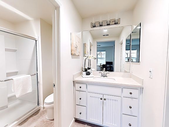 - Features: Shower Over Tub, Solid Surface, Tile, Updated Baths, Stone, Window, Stall Shower, Double Vanity, Sitting Area, Walk-In Closet(s)
