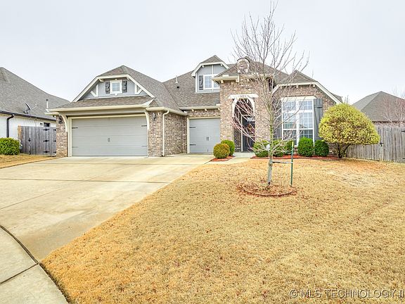 BEHOLD this pretty and pristine custom built home by Simmons in the highly sought after Providence Hills Cul de sac! This trendy open-concept home offers 3 bedrooms, 2 bathrooms, spacious office with plenty of natural light, and an extended 3 car garage. You will love all the high-end upgrades! The bright and airy kitchen offers White Quartz countertops, large Quartz island, upgraded stainless Frigidaire appliances, subway tile backsplash, eat-in kitchen, walk-in pantry, and much much more. The backyard offers a screened-in porch sitting area, trees, and privacy fence. Located in the popular Bixby School district and Bixby West Elementary. Plenty of shopping and dining nearby, including the new Tulsa Premium Outlet Mall. Wonderful neighborhood amenities include a park, spacious clubhouse, sparkling pool, walking trails, and plenty of ponds great for fishing. Must See! Won't Last Long!