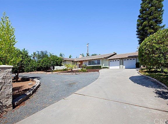 Town & country living at its best in this upgraded/remodeled SINGLE LEVEL home on over 1/3 acre. Lacquered kitchen cabinets, granite counter tops, newer tile flooring & carpet. Both bathrooms are completely remodeled with slate title. All New double paned UV tinted windows and slider patio door throughout the entire house. Circular driveway, fenced rear yard with dog run, large covered patio and various family fruit. Easy commute access to freeways & close to downtown amenities, yet still far enough away for that country vibe. Turn-key ready. Lots of special features: Hand troweled walls & ceilings, granite tile kitchen counters, lacquered kitchen cabinets, 18" large ceramic floor tiles, wet bar in family room, 1 year old water heater, both baths are granite counter tops, with slate floors. New 13 panel Solar system in 2023.along with a New 50 year Owens Corning roofing and all New double paned windows throughout the house and garage. 2 car garage is extra sized with a large workshop area with both 120V and 220V available. Circular driveway and drought tolerate landscaping. Planted along property perimeter are sweet limes and oranges. Side of house, gated RV & boat parking.