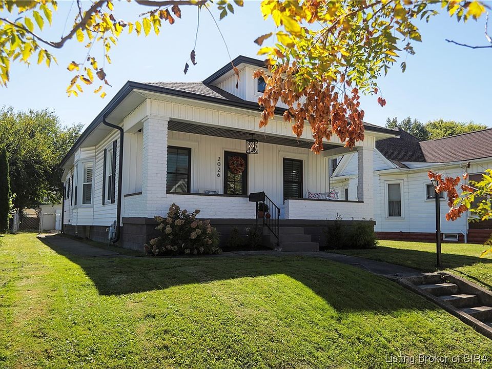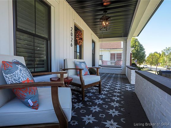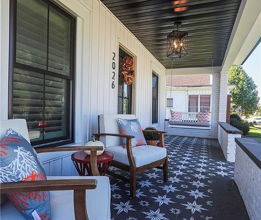 Welcome to this stunningly transformed classic bungalow, where modern living meets timeless charm. As you approach, the inviting front porch is complete with a cozy swing and stenciled flooring design. Step through the elegant glass-pane door into an open-concept living space, ideal for gatherings and cozy nights by the fireplace in the hearth area. The kitchen offers abundant cabinetry, granite countertops and a generous dining area with charming recessed built-in. An adjacent custom-built laundry room offers plentiful storage, including laundry bin, and a broom pantry equipped with an outlet for vacuum charging. The primary suite features a statement accent wall and ensuite bathroom with a linen closet. The guest bedroom is conveniently located next to a stylishly designed guest bath with recessed linen shelves. Throughout the home, you'll find designer lighting, luxury vinyl plank and tile flooring, plantation shutters, custom shades, and wainscoting, adding to the elegance and functionality. An unfinished basement is ideal for storing your treasures! The expansive composite deck is perfect for morning coffee and alfresco dining, while the oversized backyard is fenced and includes a two-car detached garage with additional two parking spaces. Every inch of this home has been thoughtfully updated, making it the perfect blend of classic architecture and modern convenience. Listing agent is one owner, and the furnishings are being sold separately--ask agent for details!