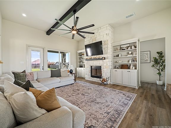 Step inside and be captivated by the soaring ceilings, large windows, and warm, neutral custom finishes that are like no other. The heart of the home features a breathtaking stone fireplace framed by custom built-ins — a striking focal point that embodies both style and comfort.