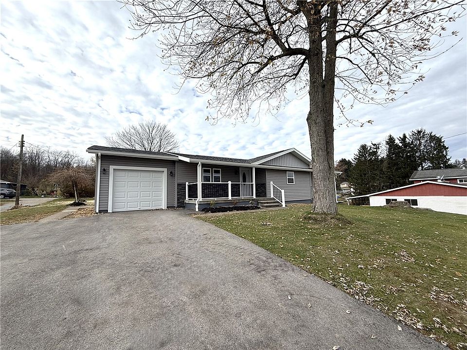 Discover modern comfort in this newly remodeled ranch, featuring an attached one-car garage and a sprawling back patio perfect for outdoor relaxation and gatherings. Step into a spacious living room highlighted by beautifully refinished hardwood floors and recessed lighting, offering a bright and open feel. The full-service kitchen is a showstopper—brand-new stainless appliances, a custom center island with quartz countertops, and a cozy breakfast nook surrounded by windows that overlook the serene backyard. All three bedrooms are fresh and inviting, complete with brand-new wall-to-wall carpeting in a smoke-free, pet-free environment. The large bathroom boasts an oversized vanity, a brand-new shower, and a bidet for added comfort. With its updated features and easy one-floor living, this low-maintenance home blends style, convenience, and peaceful living in one beautiful package—move right in and enjoy!