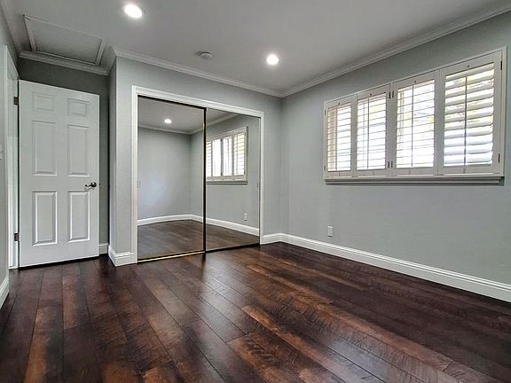 Welcome to this beautifully remodeled 3 bedroom, 2 bathroom single-story house located in Campbell, CA. This corner lot property features a spacious kitchen-dining room combo with quartz/granite countertops and stainless steel appliances. The laminate wood and tile floors flow seamlessly throughout the home, complemented by recessed lighting and double pane windows with shutters. The primary suite offers a double-wide shower stall and shower-tub for added convenience. Enjoy the comfort of central heating and A/C, as well as the attached garage and driveway for parking. Step outside to the low maintenance front and back yards, complete with a covered patio, storage space, small putting course, and a refreshing pool for those warm summer days. Don't miss out on this fantastic opportunity to call this house your home!