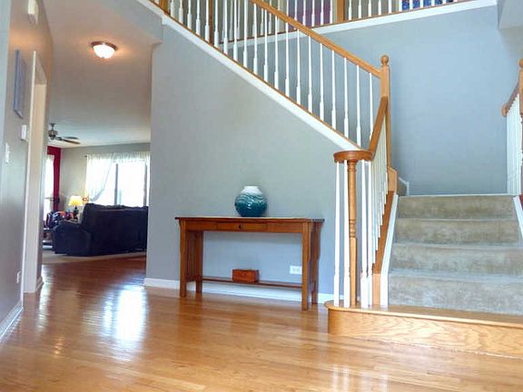 Superbly clean Hawthorne model boasts vaulted & High ceilings providing desirable airy &open floor plan w/lots of natural light. Hardwood floors from foyer to kitchen greet you along w/upgraded wood railing t/o. Superb gourmet kit upgraded w/42" cabs, granite ctops, dbl oven, &eat-in space w/sliders to patio/fenced yard. Full basement footprint ready to finish w/rough-in plumbing to make future great room truly great! Can lights galore & ceiling fans in all the right places. FR w/home theatre package inc. surround sound. DR w/attractive wall & ceiling wood molding. Voluminous Master BR w/huge walk-in closet, vault ceiling, &French doors to awesome ceramic bath w/Dbl sinks, soaker tub, &sep shower. Attractive Loft overlooks 1st floor. BR2&3 have walk-in closets too. Laundry w/top line Profile GE front loader washer/dryer &sink. Almost 1/4 acre of fenced yard ready to entertain w/generous patio & fire pit. Walking paths &ponds nearby provides quiet serenity. This home gushing w/curb appeal is a 10+ and in superb, loved neighborhood.