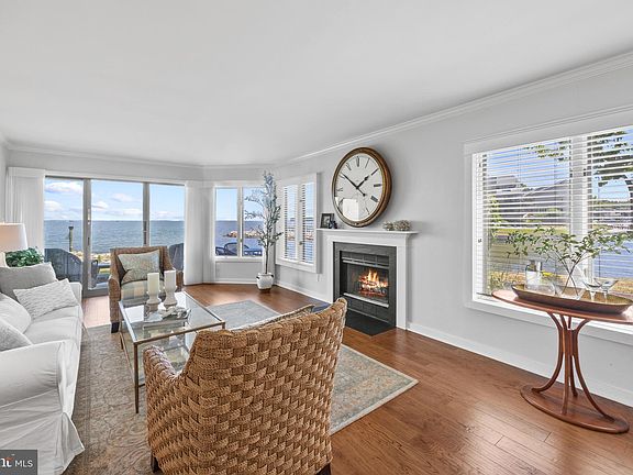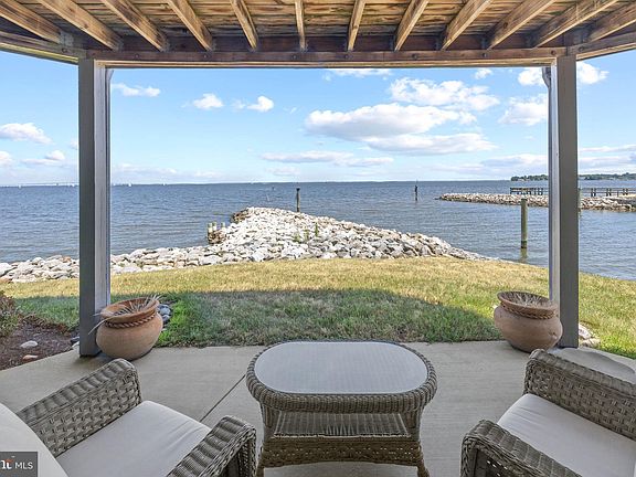 Welcome to this elegantly remodeled terrace-level condominium in the prestigious gated community of Chesapeake Harbour. This unique property is fully accessible with no steps and is positioned perfectly, boasting uninterrupted and sweeping views of the Chesapeake Bay and Chesapeake Harbour Marina. Step through the private covered entrance into the property where no detail has been overlooked. The interior showcases stunning updates throughout including natural wood floors, custom moldings, design-inspired lighting, waterfront glass sliding doors, Gourmet Kitchen and modernized spa-inspired bathrooms. The living space features a thoughtful floor plan with two bedrooms, both with luxurious ensuite bathrooms, and a living room adorned with a cozy wood-burning fireplace and breathtaking water views. Sliding glass doors open to a uniquely private, one-of-a-kind waterfront patio, perfect for outdoor relaxation and entertaining. The newly remodeled Gourmet Kitchen is a chef's dream, featuring inset cabinetry, Quartzite natural stone countertops with a breakfast bar and seating, glass tile backsplash, and stainless steel appliances. A dedicated coffee/bar area, complete with cabinetry and storage, adds to the kitchen's allure. The stacked washer and dryer are conveniently and discreetly located for easy access. Retreat to the primary suite, where you will find a spacious custom closet and private sliding glass doors that open to the patio, offering serene water views. The spa-inspired ensuite bathroom includes a marble-topped double vanity, touch sensor illuminated mirror, and a glass-enclosed shower with floor-to-ceiling glass tile. The guest suite provides a welcoming haven for visitors, with its own ensuite bathroom featuring a shower/tub combination, marble-topped vanity and design-inspired tile flooring, ensuring privacy and comfort for all. Residents of Chesapeake Harbour enjoy a plethora of resort-style amenities, including two swimming pools, two fishing piers, kayak racks, scenic walking paths, boat slips, a private beach, tennis courts, and an on-site waterfront restaurant. These exceptional amenities provide endless opportunities for leisure and recreation, making this home not just a place to live, but a lifestyle to embrace. The close proximity to Eastport and Downtown Annapolis allow for ease and entertainment. Don't miss this rare opportunity to own the most sought-after condo in Chesapeake Harbour, where luxury meets tranquility.